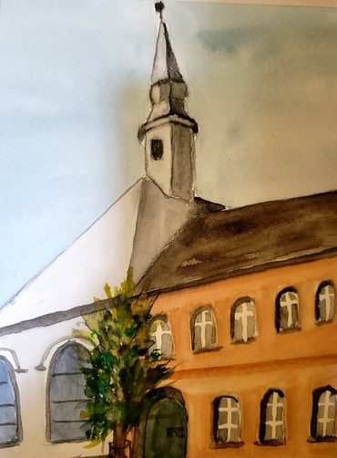 Die Künstlerin ist der evangelischen Kirche von jeher tief verbunden, hat lange Jahre im Kirchendienst gearbeitet und war immer schon gestalterisch tätig, sowohl beruflich, als auch in ihrer Freizeit. Seit sie im Ruhestand ist, hat sie das Aquarellieren intensiviert, in verschiedenen Malgruppen mitgewirkt, an Malseminaren und mehrmals an der Gerresheimer Kunstmeile teilgenommen. Sie arbeitet auch gerne mit Acrylfarben, hat sich für diese Ausstellung aber auf ihr besonders wichtige Aquarelle konzentriert.
